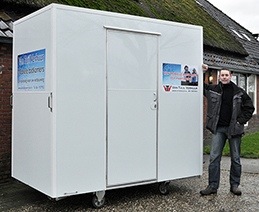 Wij verhuren compleet ingerichte badkamers, regelen het vervoer en sluiten aan!